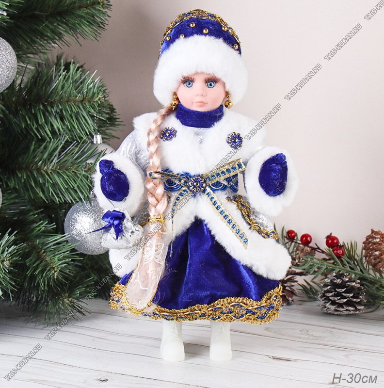 Фигурка музыкальная (синяя шубка) "Снегурочка" h30см
