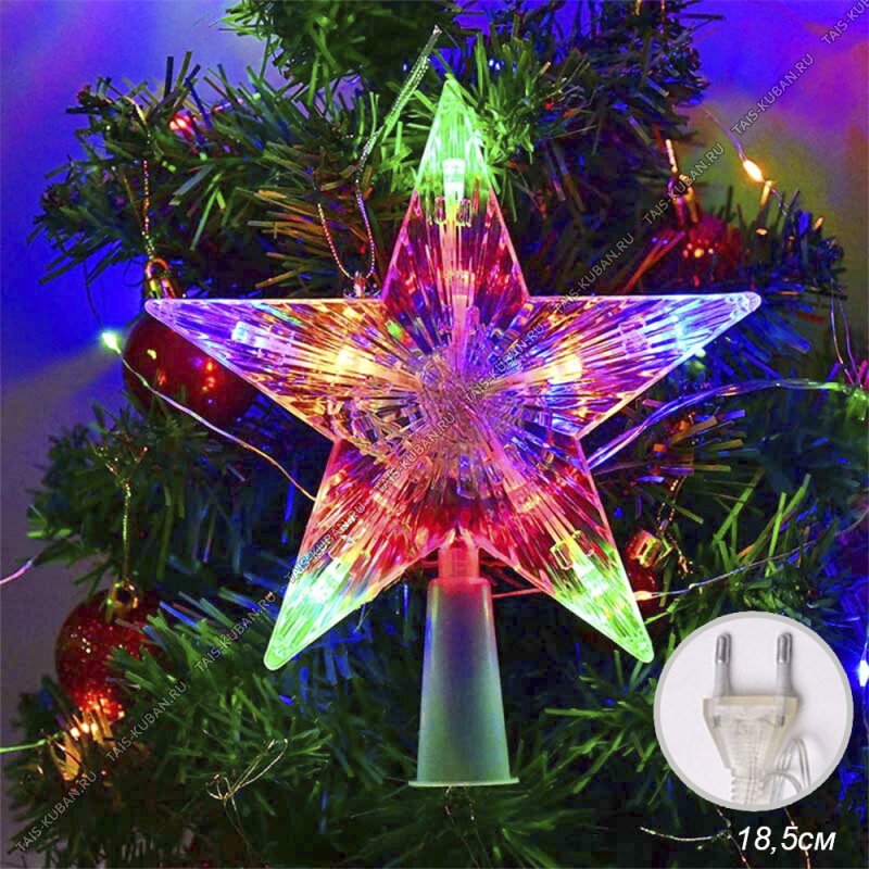 Электрогирлянда Электрогирлянда "Звезда" на вершину 18,5см, 15разноцв.LEDламп, прозрач.провод,220V (100)