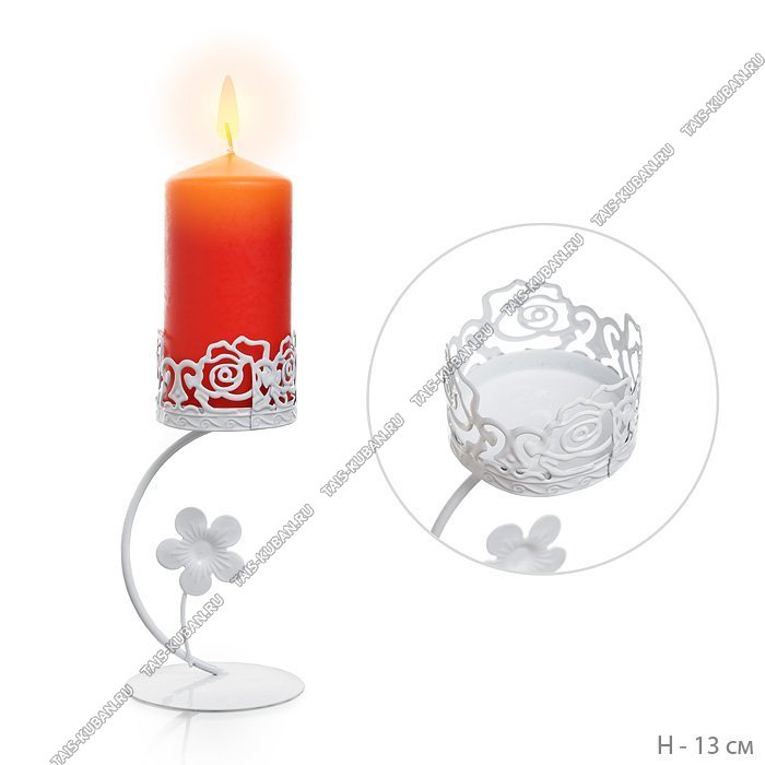 Подсвечник (металл) на 1широк.свечу h13см, декор.цветок, белый, п/у (288)