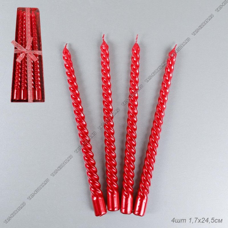 Свеча (парафин) "Красная" стержень/витые, н-р 4шт h24см, п/у (120)