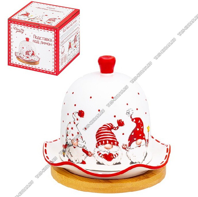 Веселые гномики Подставка п/лимон d12,5см с крышкой h11см, на дер.подставке п/у