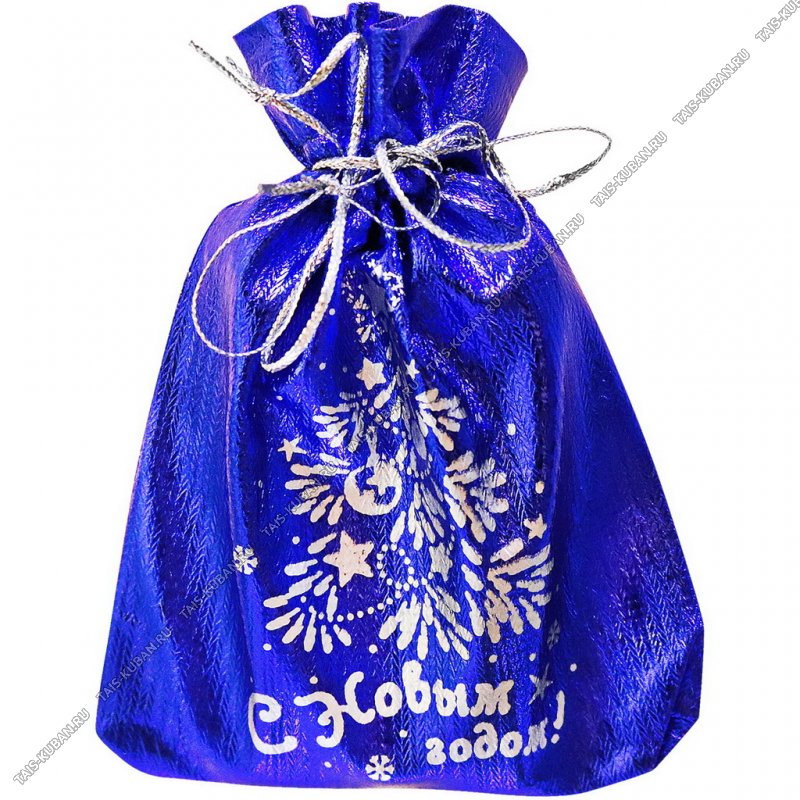 Мешочек парча СИНИЙ Мешочек парча СИНИЙ "С Новым Годом/Снежинка" (10х12см) с затяг.тесьмой (1)