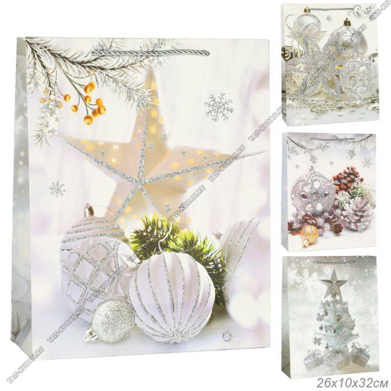 Пакет бумажный (h32х26см) "Серебристый Новый Год" (12)