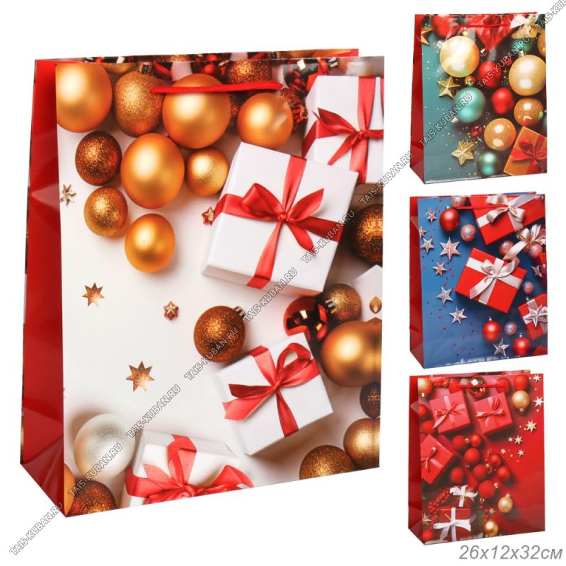Пакет бумажный (h32х26см, дно10см) "Подарки новогодние" (12)