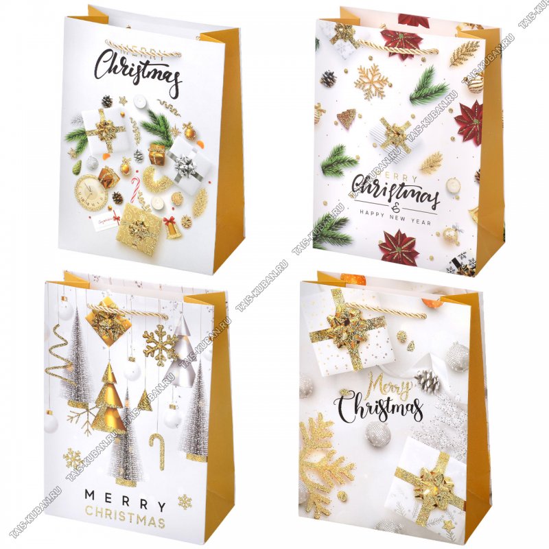 Пакет бумажный (h32х26см) Пакет бумажный (h32х26см) "Золотой Новый Год/Merry Cristmas" (12)