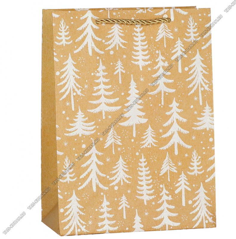 Пакет бумажный (h24х18см, дно8,5см) "Золотой лес/Ёлки" (12)