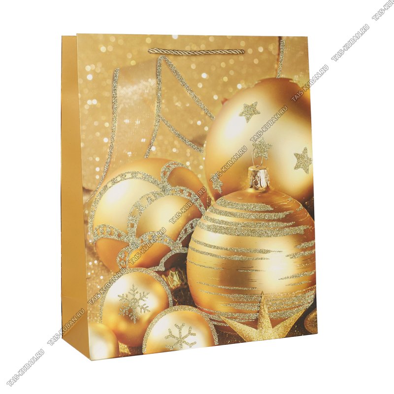 Пакет бумажный (h40х31см, дно12см) "Золотой Новый год/Шары" (12)