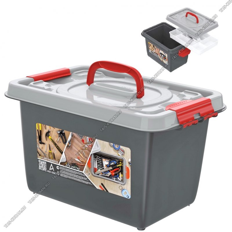 Контейнер "Рыбалка/Инструменты" 10л с вкладышем,черный/серая крышка на 2защелки+ручка (36х24 h21см) (14)