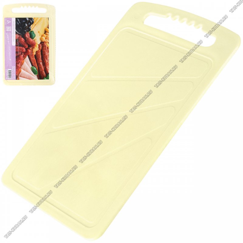 Доска разделочная, вырубная ручка (28х17см толщ.0,5см) жёлт, с желоб, Альт-Пласт(50)