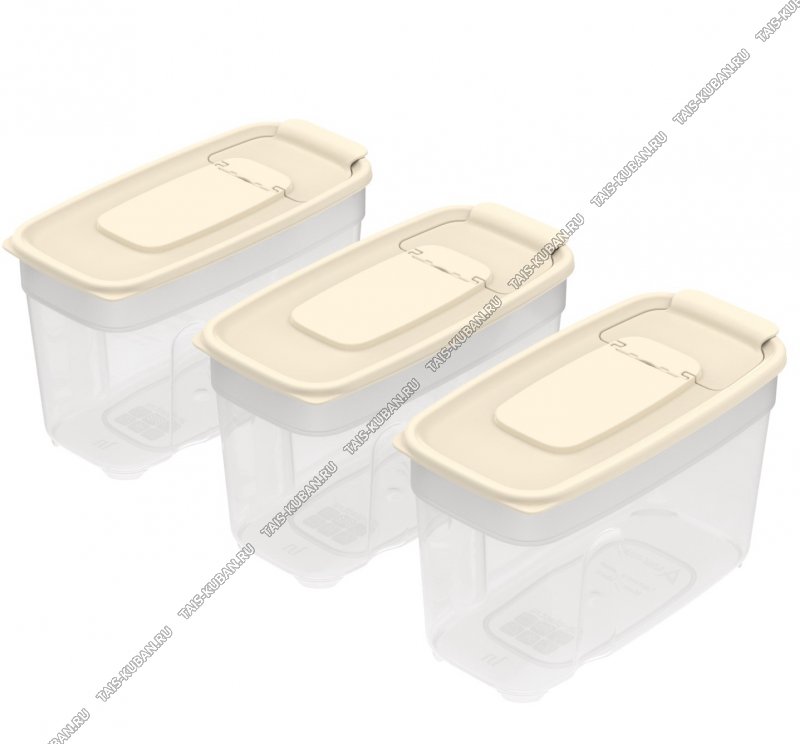 Емкость д/сыпучих Н-р 3шт бежев 1л с дозат,прям.(17х8,5 h16,5см) (23)