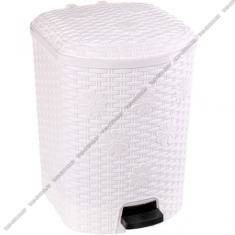 Ведро д/мусора с педал 12л "Плетенка/Цветы" бел (33х23 h22см) внут.съем.вед (1)