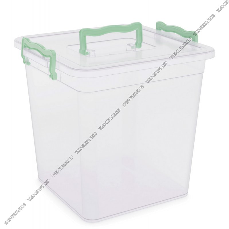 Контейнер для храненения, прозрозрачный, квадратный 12л (26х26 h28см) крышка с ручками, 2защелк (8)