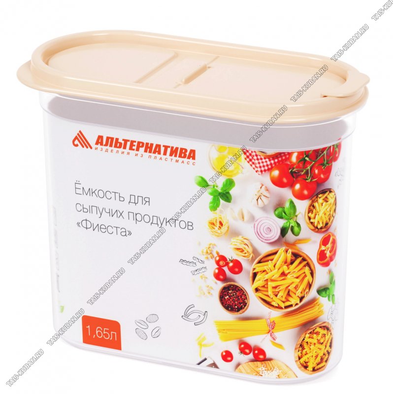 Емкость "Фиеста" 1,6л д/сыпучих,беж.крыш с дозат,овал (19х9 h16,5см) (8)