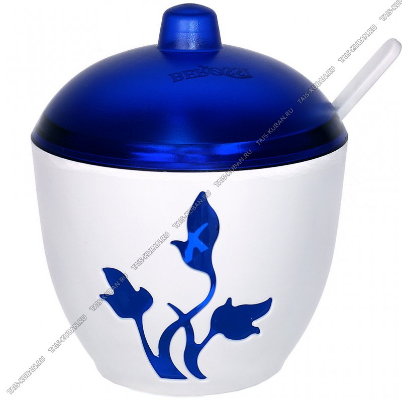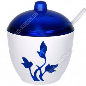Сахарница с крышк 0,3л +ложка, бел/син (d10 h8см) Viola (24)