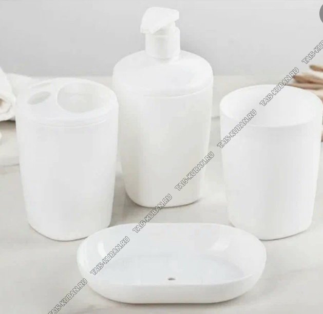 "Aqua" бел Набор 4пр.(дозатор д/мыла,мыльница,стакан,стакан-подставка) (45)