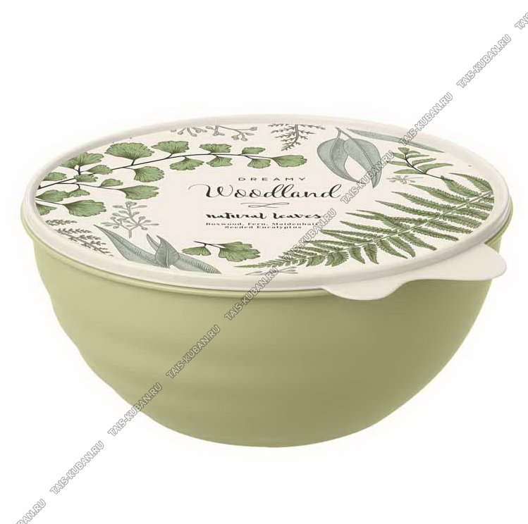 Миска с крышкой "Травы/Листья" зеленый 0,85л (d16 h7см) (15)
