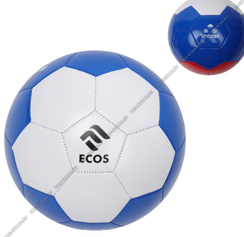 Мяч футбольный d22см, вес 240 (+/-10г) "ECOS" 3-х сл.ПВХ, ,машин.шов,бел/син/крас (50)