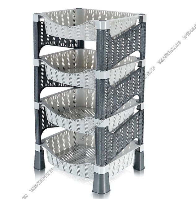 Полка/этаж.д/кухни,ванной 4-х яр.(41х33 h78см) "Плетенка" гравит/св.сер (1)