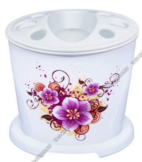 Подставка д/зубн.щеток 6шт.+зуб.пасты "Ориент" 13х9 h13см (рис.цветы)(40)
