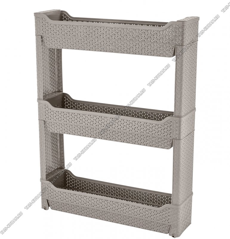 Этажерка "Венге" серый 3-х ярус, (59х13 h69см) полки ротанг (5)