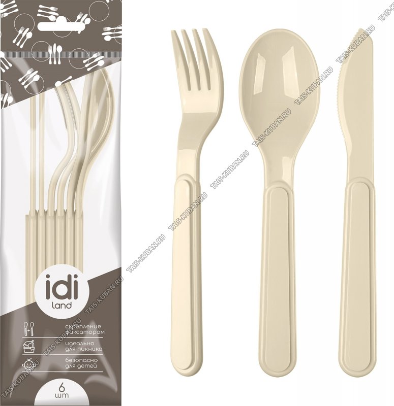 Столовые приборы н-р 6шт бежевый, нож, ложка, вилка, защелк. друг в друга, уп.пакет (20)