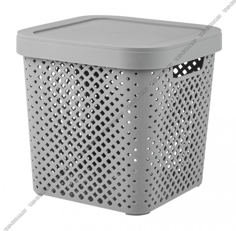 Корзина "Stockholm" серый,с крышк 20л квадр (31х31 h30см) выруб.руч.(8)