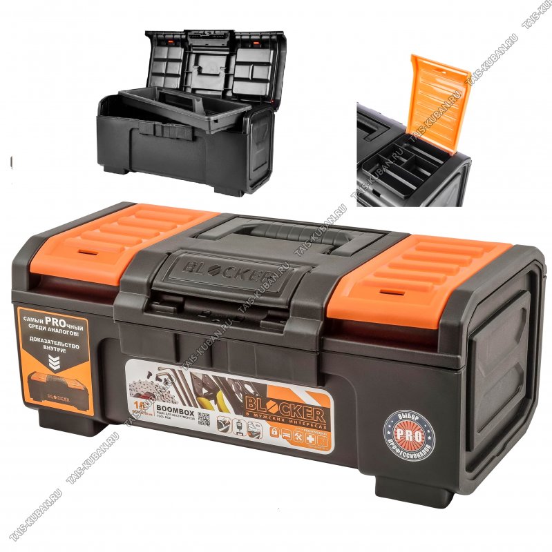 Ящик д/хоз.и инструм."BoomBox 16" (41х22 h16см) пласт.защ,лоток+2отд.на кр,черн/ор(6)