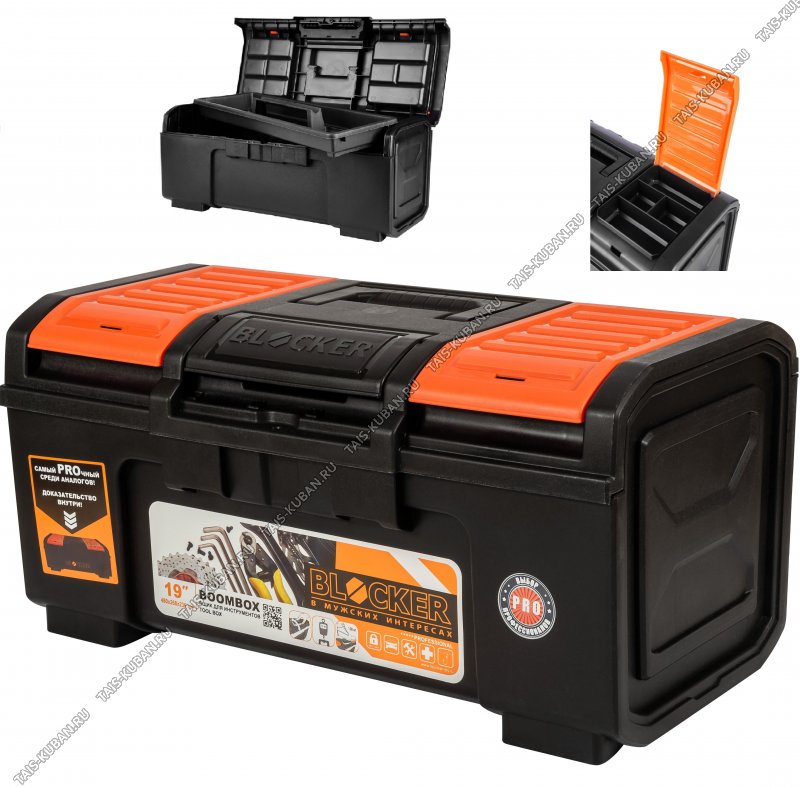 Ящик д/хоз.и инструм."BoomBox 19" (48х24 h25см) пласт.защ,лоток+2отд.на кр,черн/ор(6)