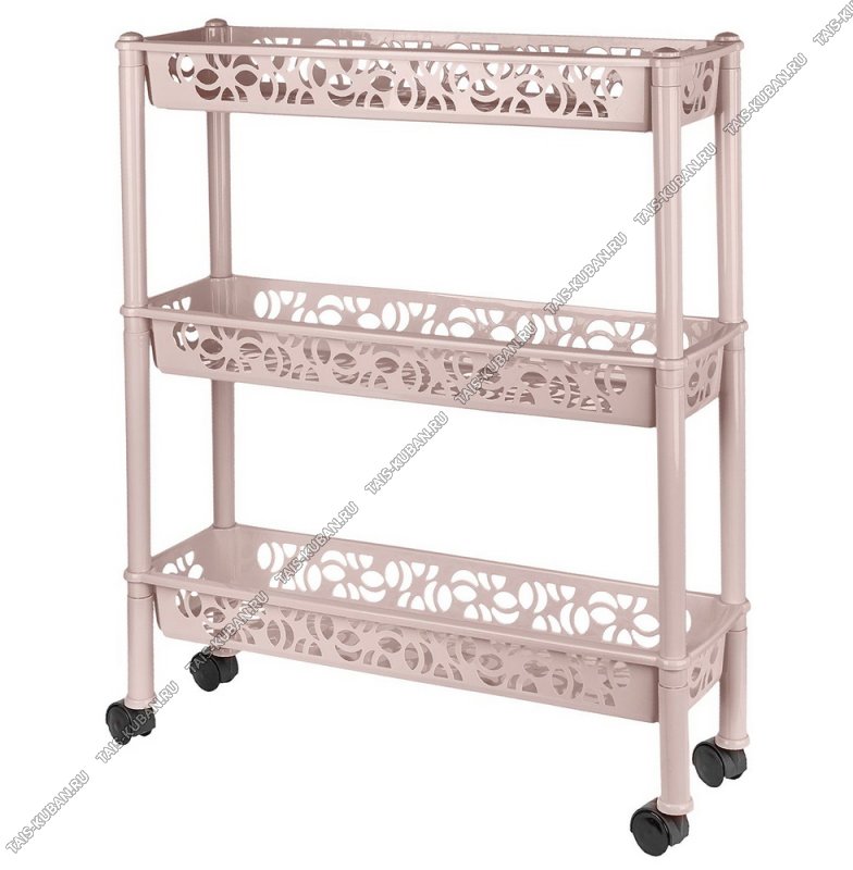 Этажерка "Prima" беж 3-х ярус,узкая,на колес,д/кухни,ванной,(58х18 h69см,глуб.лотка 6.5см) полки ажурные (12)