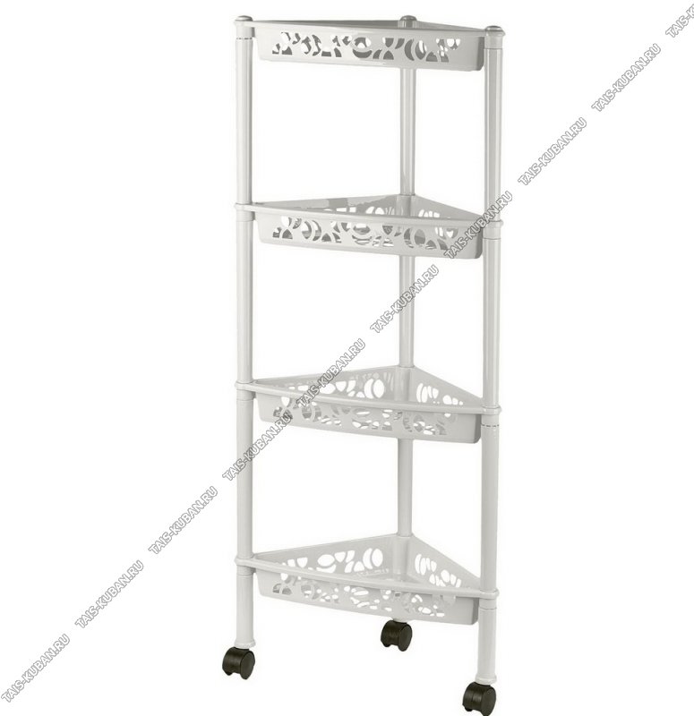 Этажерка "Prima" углов. бел 4-х ярус,на колес,д/кухни,ванной,(38,5х22 h93,5см,глуб.лотка 6.5см) полки ажурные (8)