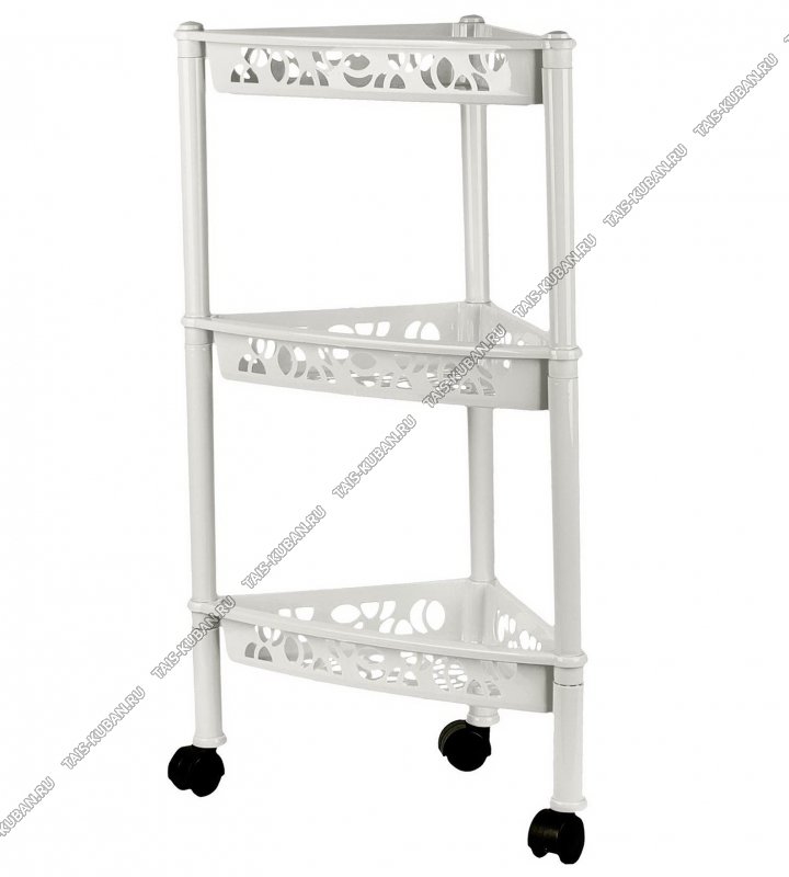 Этажерка "Prima" углов. бел 3-х ярус,на колес,д/кухни,ванной,(38,5х22 h69см,глуб.лотка 6.5см) полки ажурные (10)