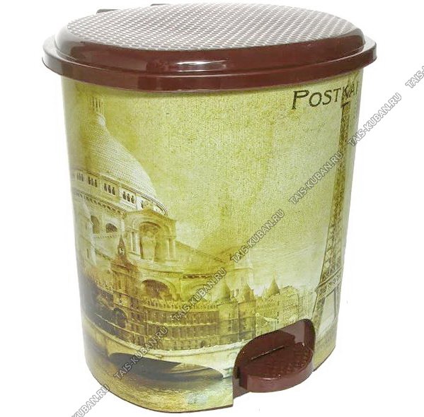 Ведро д/мусора с педал. 12л овал "Париж" беж/корич (29х24 h30см) внутр.съем.ведро (8)