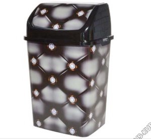 Ведро для мусора, крышка Ведро для мусора, крышка "трапеция" качающаяся 8л "Кожа" серебристый перламутр/черный(20)