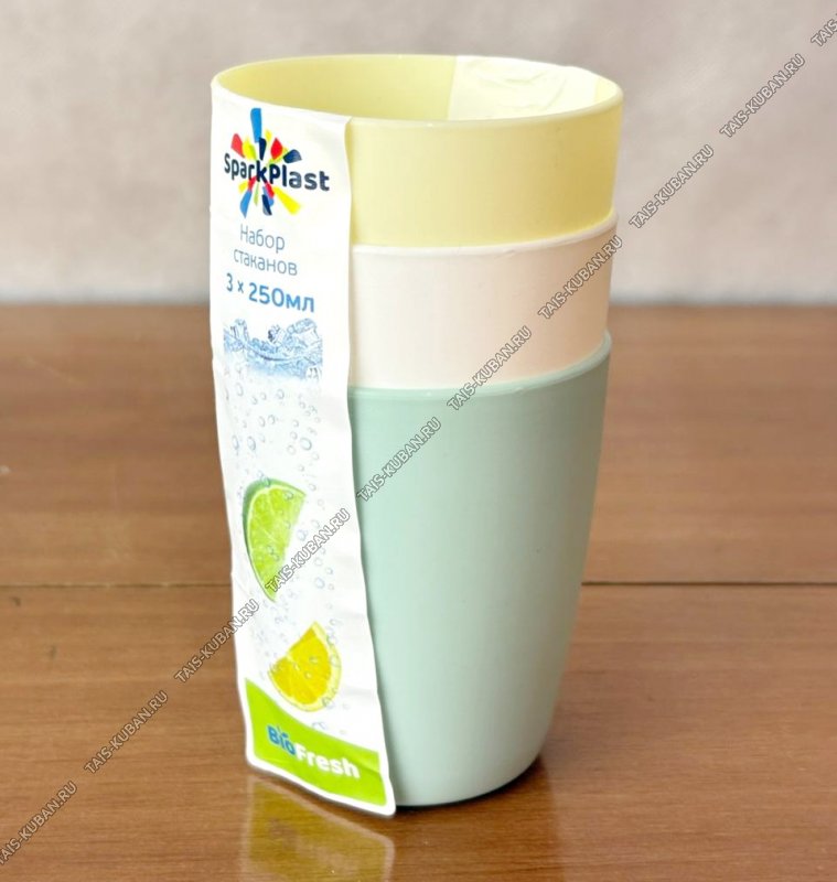 Стакан н-р 3шт, 250мл, d8см, белый+мята+лимон (10)