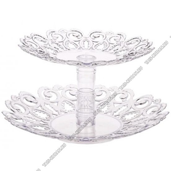Фруктовница 2-х яр.круг (d21/26 h14см) "Мелодия" резн.узор,прозр (22)