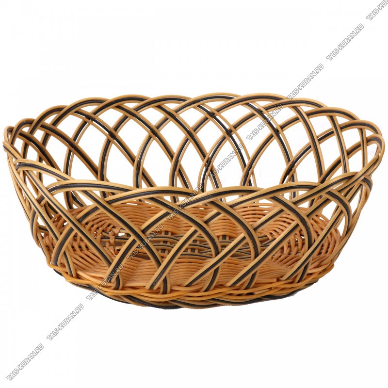 Корзинка/хлебница плетеная, круг.(d25,5 h11см) соломен/коричн (300)