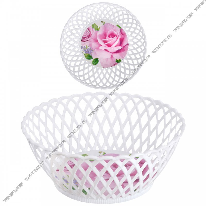 Корзинка/Ваза кругл (d21 h9см) "Розы,пионы" резной борт,бел (200)
