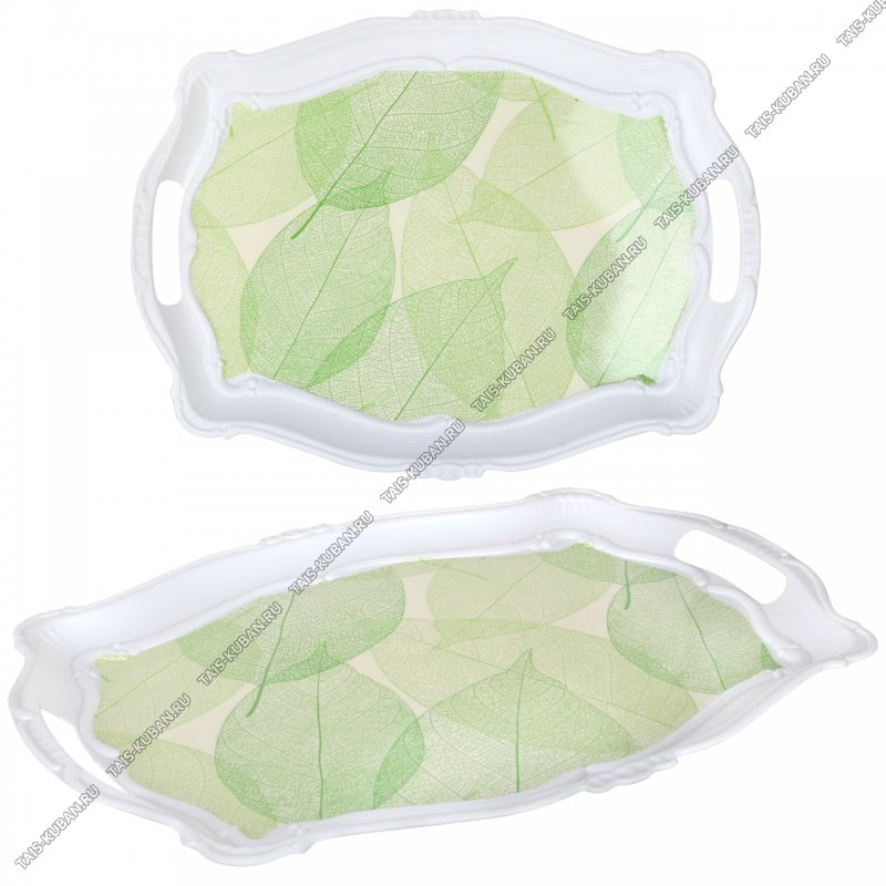 Поднос прям. (38,5х29см) Поднос прям. (38,5х29см) "Листья" фигурн. борт, с ручк. (100)