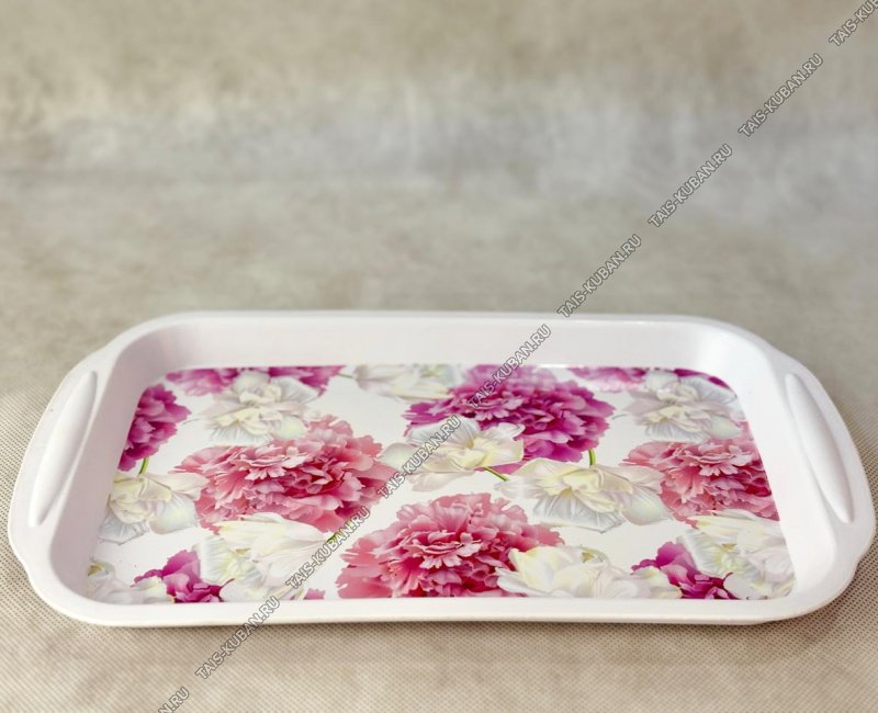 Поднос прям.(32х21см) "Пионы" с ручк,белый (100)