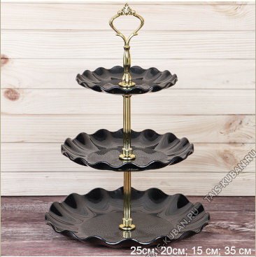 Фруктовница 3-х яр, кругл (d15/20/25 h35см) "Прованс/Черный" волнист.край, золот.креплен (80)