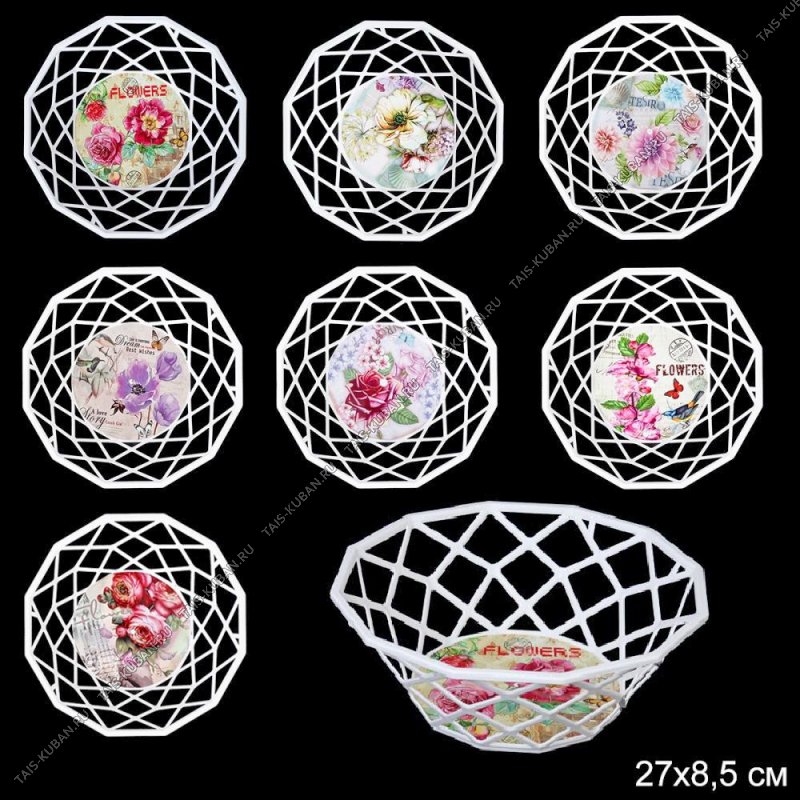 Корзинка/Ваза кругл (d27 h9см) "Цветы" резной борт,белое (200)