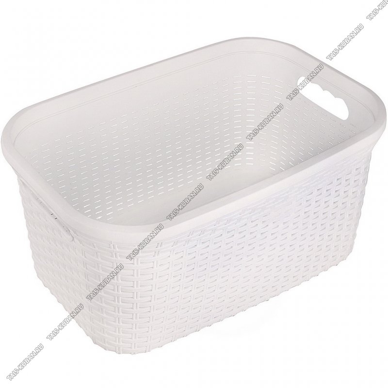 Корзина "Ротанг" без крышки,белый 32л, прямоугольная (50х25 h33см) вырубные ручки (5)