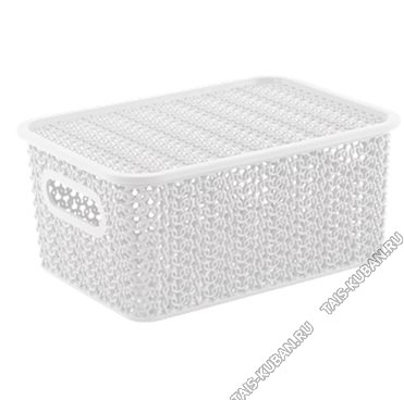 Корзина "Вязь" белый,с крышкой 3л, прямоугольная (23х17 h10см) вырубные ручки (16)