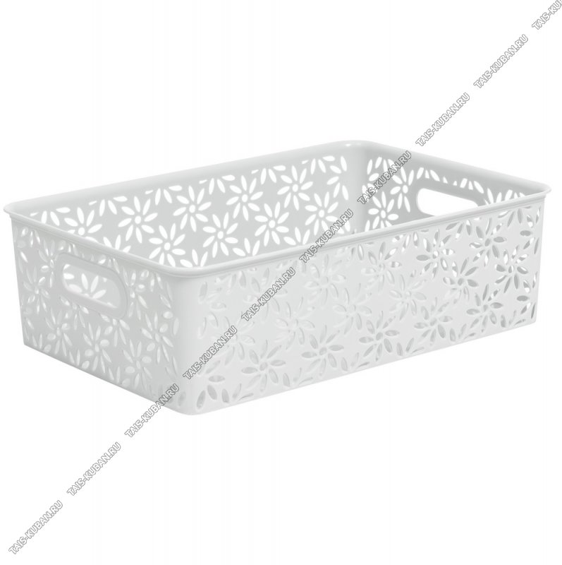Корзина "Ромашки" без крышки,белый 7,5л,прямоугольная (35х24 h10см) вырубные ручки (12)