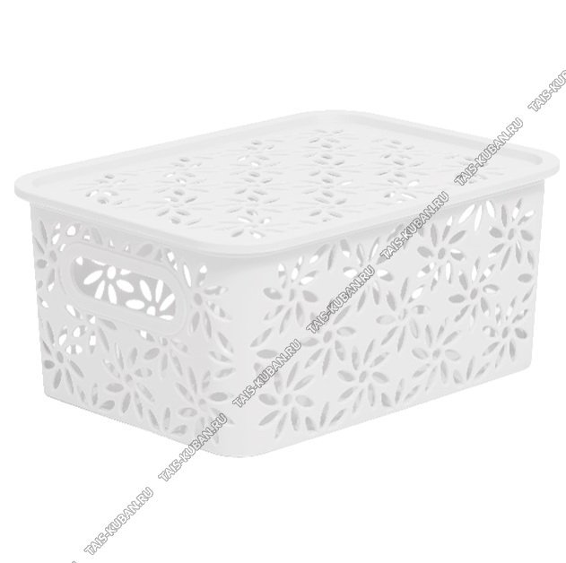 Корзина "Ромашки" с крышкой,белый 3,0л,прямоугольная (23х17 h10см) вырубные ручки (16)