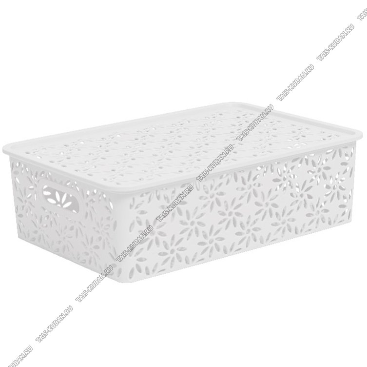 Корзина "Ромашки" с крышкой,белый 7,5л,прямоугольная (35х24 h10см) вырубные ручки (12)
