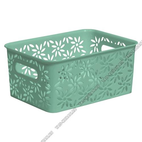 Корзина "Ромашки" пудр.зелен, б/крышки 3,0л,прям.(23х17 h10см) выруб.руч.(18)