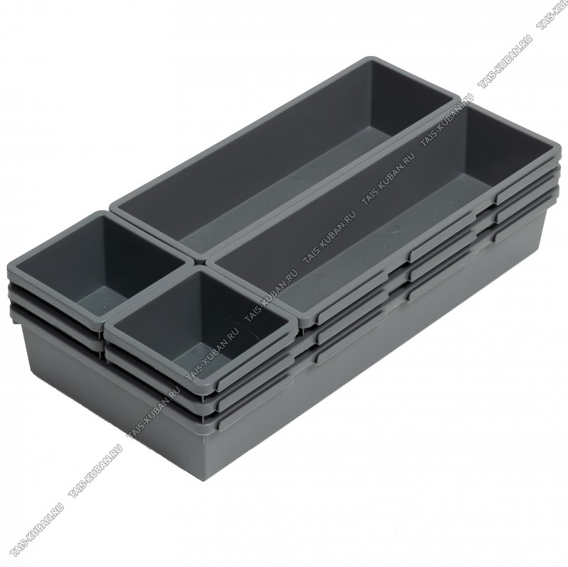 Лоток-вклад сборн.14 секц, 2шт(32х16)+4шт(32х8см)+4шт(24х8см)+4шт(8х8см) h5см, графит, "Комбо4" (12)