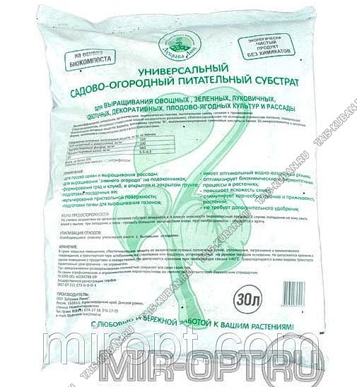 (садово-огородный питательный субстрат для овощей,зеленых,луковичных,цветочных,декоративных,пладово-ягодных и рассады)Состав: торф верховой сфагновый , песок, БИО-удобрение "Дубрава".