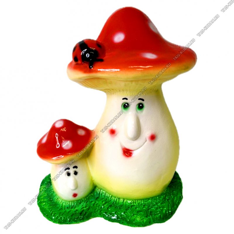 Фигурка гипс "Два мухомора с коровкой" h20х17см п/у